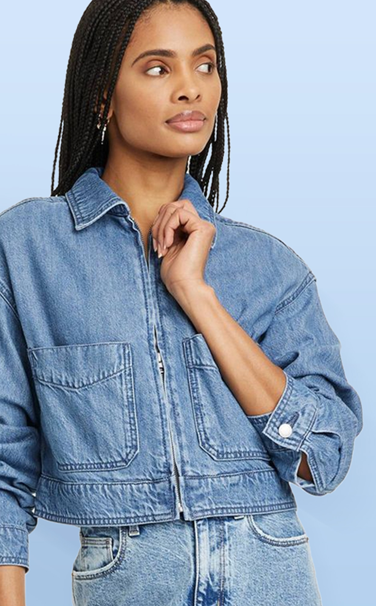 The medium-wash denim jacket is made of midweight cotton-rich fabric for comfortable all-day wear.